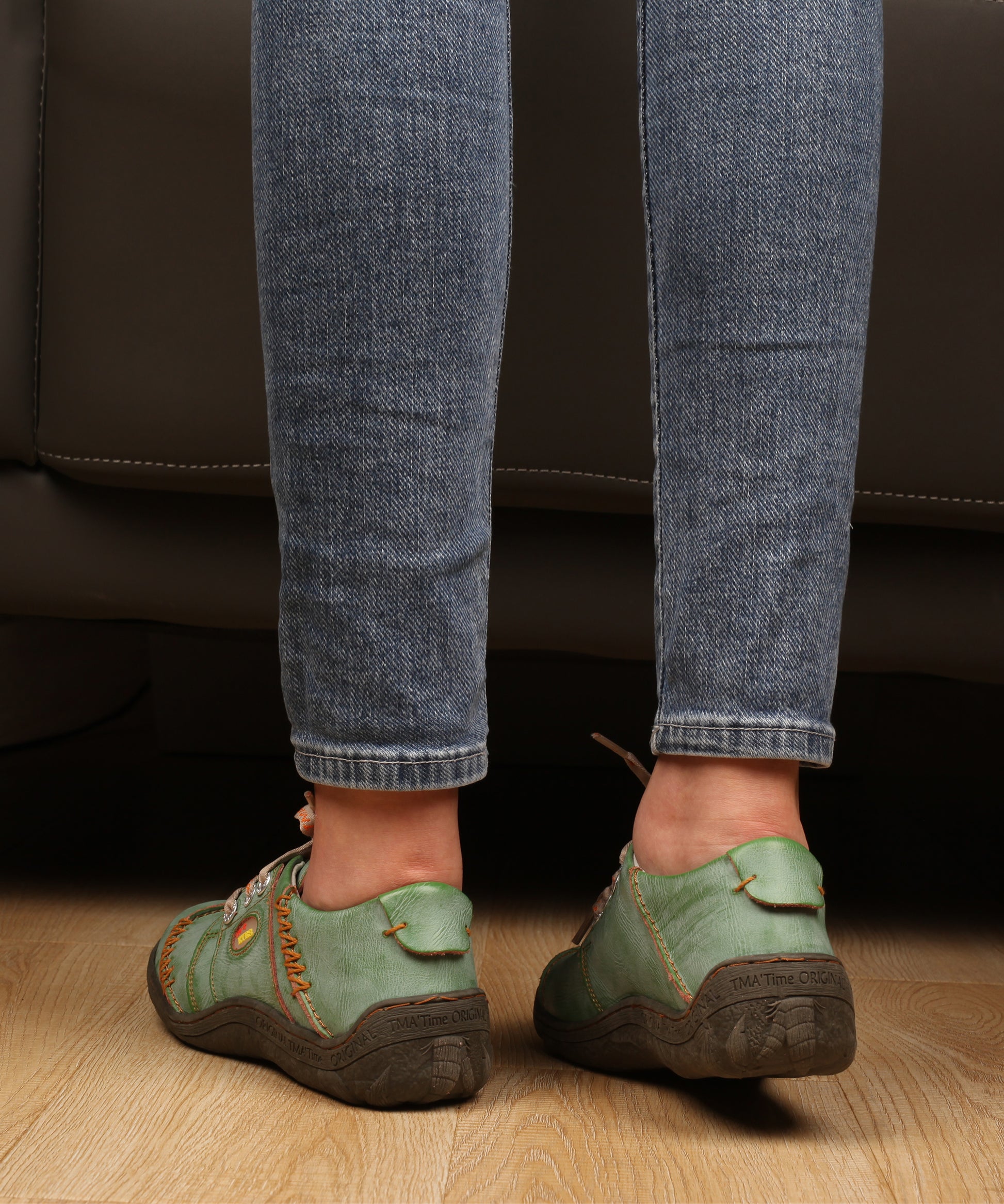 Women's Retro Style Washed Leather Hand-Stitched Lace Up Sneaker