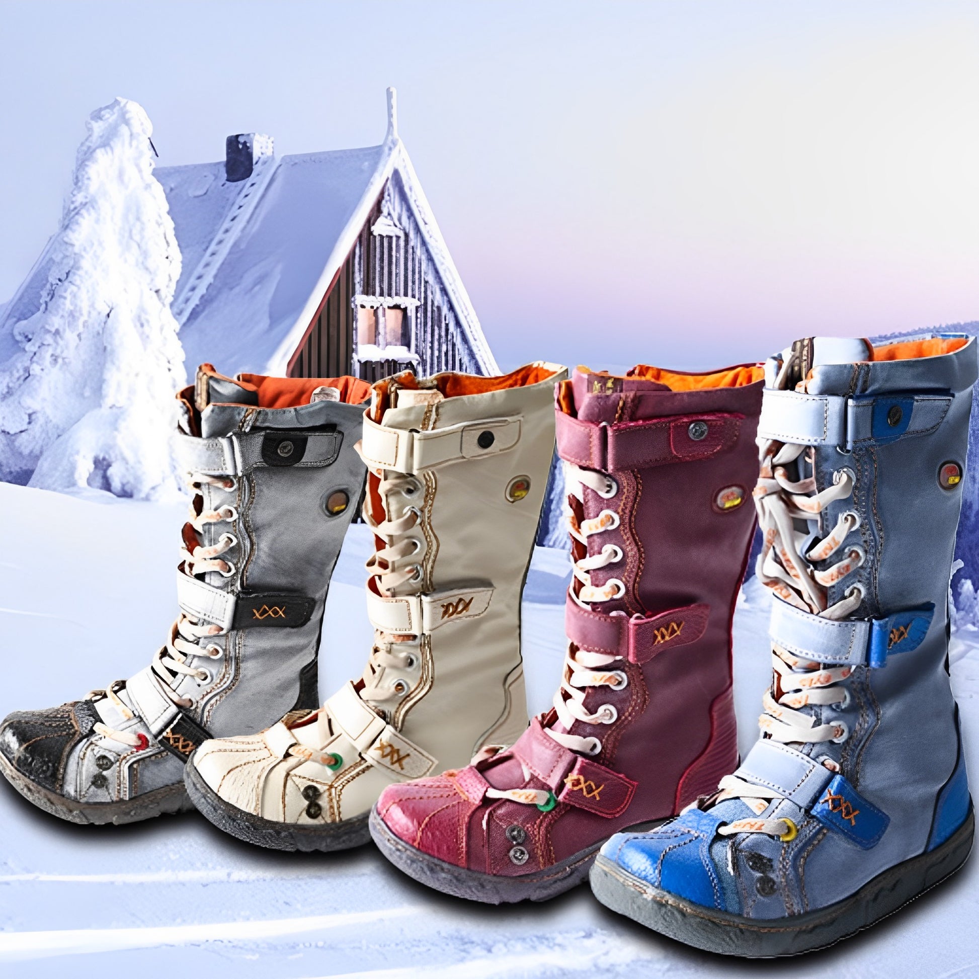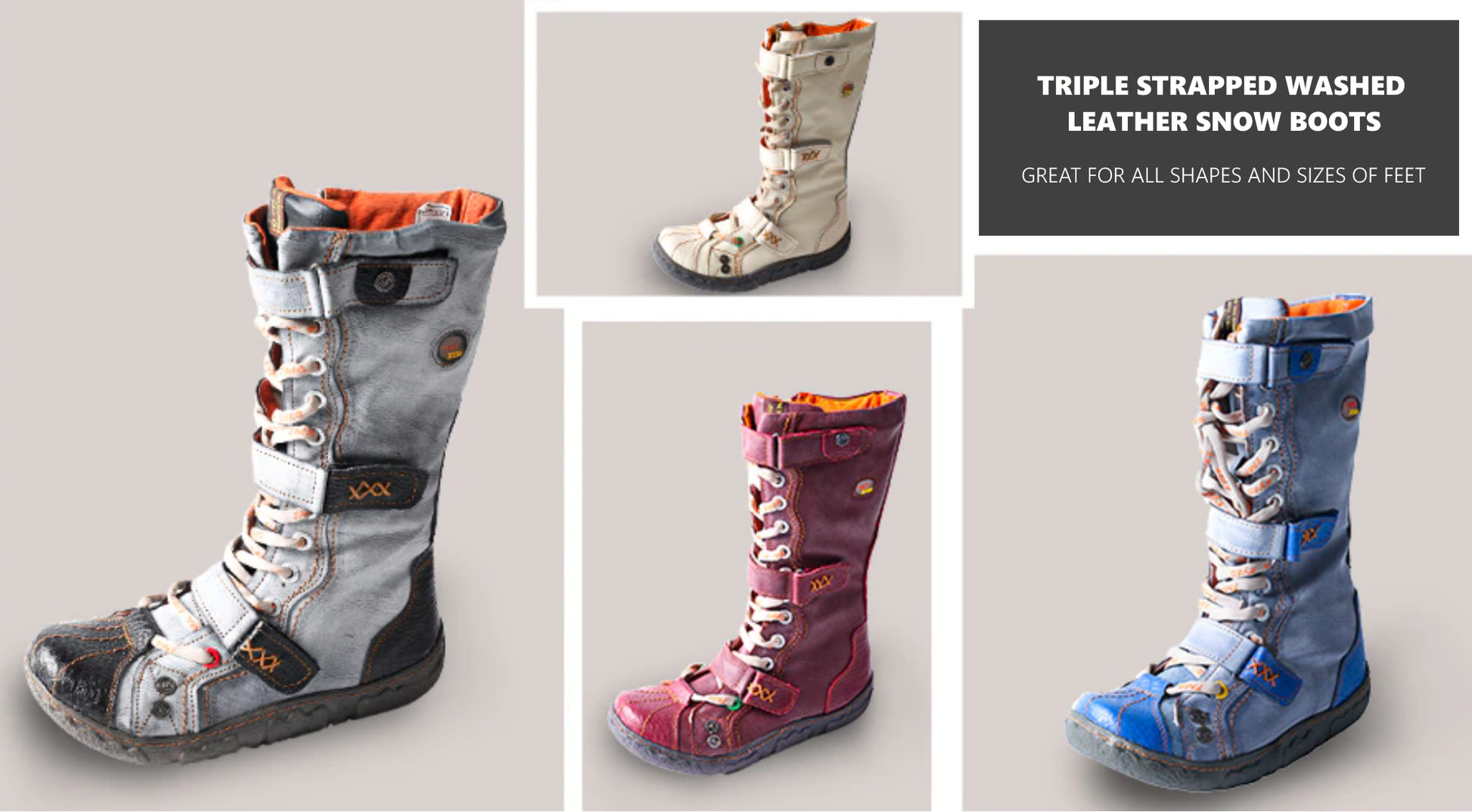 Keep your feet cozy and warm during the cold winter months with these triple strapped washed leather snow boots. Our boots are great for any shape or size of foot, and compliment any outfit! They are perfect for normal feet, flat feet and wide feet! Each boot is crafted to perfection to ensure that they fit you just right.