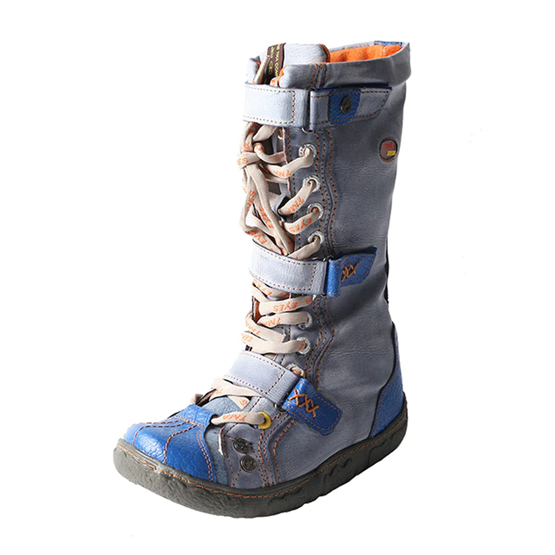 Women's Triple Strapped Calf Height Washed Leather Flat Winter Boots