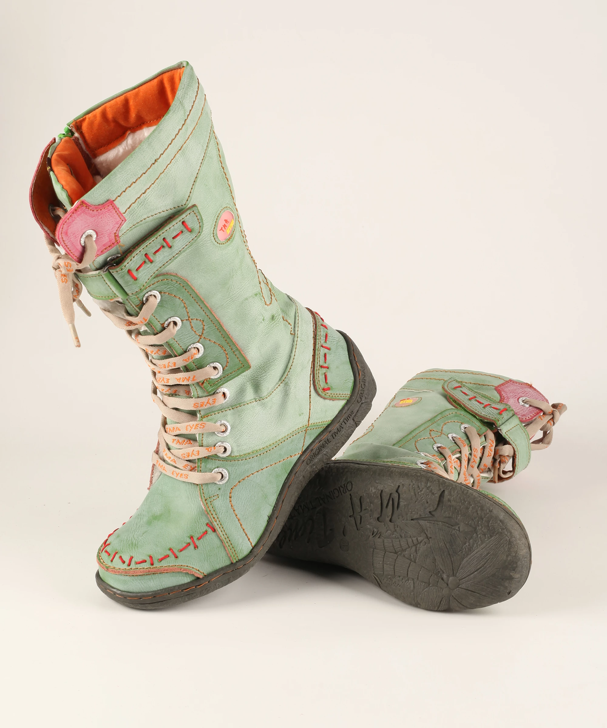 Women's Washed Leather Hand Stitched Single Strap Mid Calf Boots